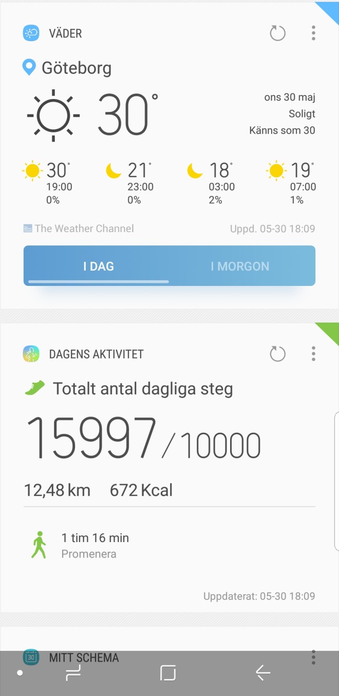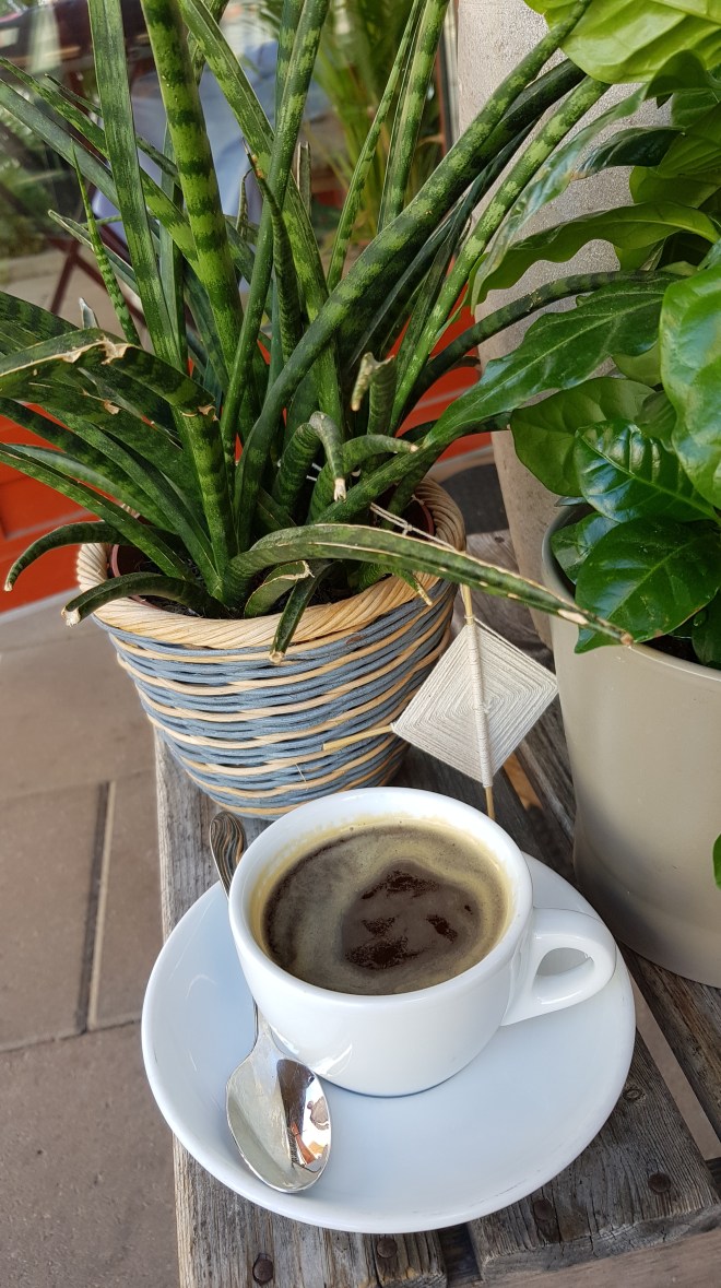 Äntligen hemma igen efter en liten runda till avenyn och affären. Där hittade jag svenska jordgubbar. Det får bli en del av dagens frukost.