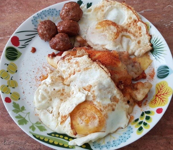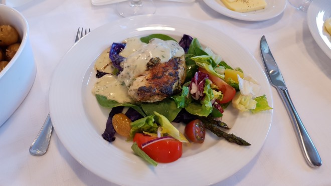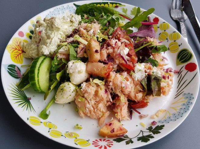 Valde lax med bacon, rödbetor, kapris och pepparrot. Så gott. Bytte potatisen mot kokta grönsaker. Så himla fräscht.