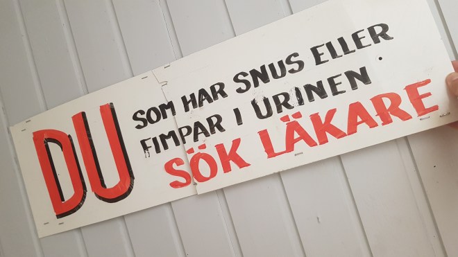 Vid bryggan finns även ett litet sommarcafe med toalett i huset bredvid. Verkar som om vissa på herravdelningen har problem förstår jag…..efter att ha läst skylten.