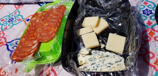 Valde att åka ut till havet igår och ta med mig lite att äta eftersom jag skulle ligga vid vattnet ett par timmar. Det blev till att packa en av mina frozzypack, som är en praktisk matlåda med kylklamp i locket. I kylen fanns parmesan, chorizo och rostbiff så det fick bli dagens lunch.